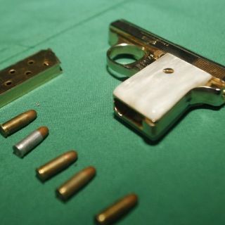 Al interior del vehículo fue asegurada una pistola del calibre .32 y varios cartuchos útiles.