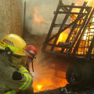 Fue que se percataron de que dentro había numerosos contenedores de hidrocarburos de unos mil litros de capacidad que al parecer era gasolina. Los bomberos trabajaron para controlar el fuego que sólo se extendió hacia una parte de una propiedad vecina donde estalló el cilindro de gas.