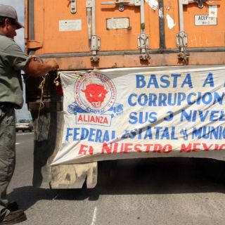 En algunas pancartas señalan: "Actuales Gobiernos de México: El transporte de carga es vital. Tomen acciones".