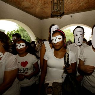 GUADALAJARA, JALISCO (18/JUN/2012).- Con máscaras de papel que traían impreso un signo de interrogación, y con una "canción de cuna", alrededor de 100 personas pertenecientes a organizaciones civiles y albergues exigieron la destitución definitiva de la directora, con licencia, del Consejo Estatal de Familia, Claudia Corona Marseille.