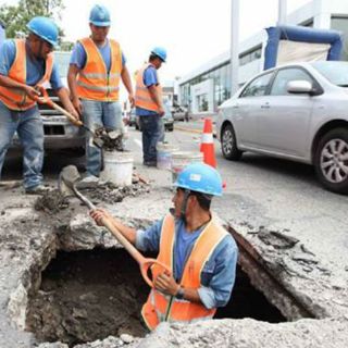 Personal del SIAPA trabaja para reparar el socavón que se presenta en la vialidad
