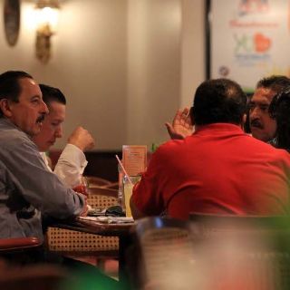 GUADALAJARA, JALISCO (17/NOV/2011).- El líder sindical de los empleados de Gobierno, Juan Pelayo Ruelas, y la líder de los trabajadores de Poder Legislativo, se reunieron en un restaurante del ciudad con el presidente de la Mesa Directiva, Salvador Barajas del Toro, y del coordinador de los legisladores tricolores, Roberto Marrufo.
