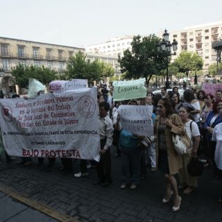 GUADALAJARA, JALISCO (09/JUN/2011).- Un grupo de 50 servidores públicos que forman parte del Sindicato de Servidores Públicos en la Secretaría del Trabajo y la Junta Local de Conciliación y Arbitraje del Estado de Jalisco se manifestó a las afueras del Palacio de Gobierno esta mañana.