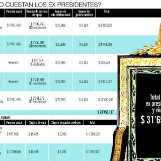 En total, Presidencia de la República erogó 21.9 millones de pesos para cubrir los salarios de los 69 funcionarios que trabajan para los ex mandatarios.