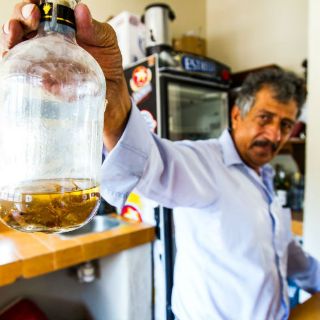 GUADALAJARA, JALISCO (15/DIC/2015).- Vidal Carranza Magallanes es el velador e intendente del Lienzo en el Bosque Los Colomos. Entre las curiosidades que colecciona está una botella de tequila con cerca de 10 alacranes de distintos tamaños que ha ido matando y recolectando. De vez en cuando, Vidal y sus amigos se echan un trago de la temible botella.