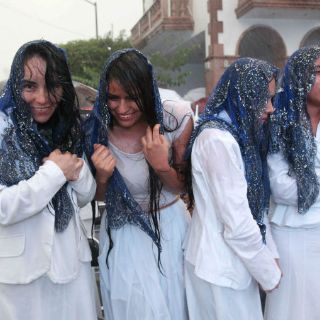 Sin embargo, esto no interrumpió la celebración religiosa, y los miles de fieles permanecieron en sus lugares participando en el evento bajo sombrillas e impermeables. En algunos casos, los hermanos tuvieron que ingresar a los niños a las casas para protegerlos.
