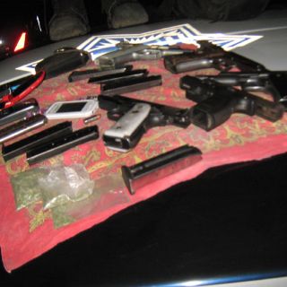 En ese momento fueron retenidos y puestos a disposición de la Policía de Tlaquepaque, quienes les encontraron dentro de una mochila tres pistolas calibre .38 súper; una .45 y una más del calibre 9 milímetros, además de balas.