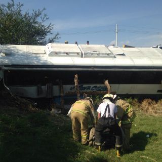 El hecho ocurrió alrededor de las 14:00 horas en el kilómetro 8+700 de la carreta El Zapote-Teocuitatlán de Corona --a la altura del rancho El Arroz, en Teocuitatlán de Corona--, donde rescatistas encontraron un autobús Dina, placas 8GZ18, el cual había volcado tras estrellarse contra las barreras de contención del carril contrario.