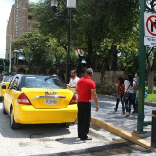 A pesar de que no está permitido por la Ley de Movilidad, choferes de taxis tradicionales se turnan para estacionarse y esperar pasaje frente a la Rotonda de los Jaliscienses Ilustres.