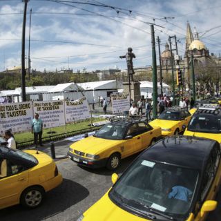GUADALAJARA, JALISCO (08/MAR/2016).- A pesar de que bloquearon las principales calles del Centro de Guadalajara con dos mil 140 unidades, manifestando su descontento por el servicio que ofrecen Uber y City Drive, los representantes de taxistas salieron sin acuerdos del Congreso del Estado.