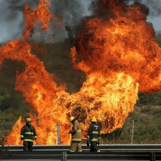 Al llegar, los "tragahumos" encontraron una flama de aproximadamente 10 metros de altura, la cual salía del ducto Pemex debido a la toma clandestina, así como dos automotores que se estaban quemando.