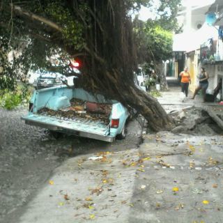 En la discoteca El Zoo, ubicada sobre el malecón, la marquesina sufrió daños, pues un árbol cayó sobre la misma, además de reportarse el incendio de un neumático en un automotor, desconociéndose las causas.