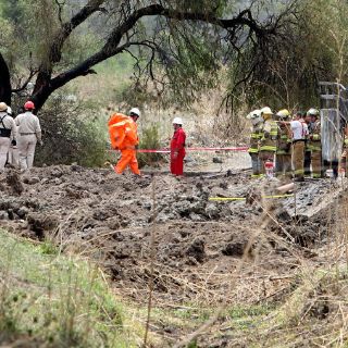 Personal del Ejercito Mexicano, Protección Civil y Bomberos y personal del sector ductos de Petróleos Mexicanos (Pemex), trabajan en el lugar