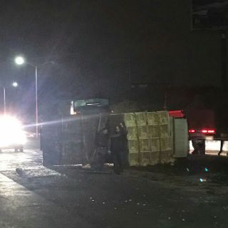 Tráiler cargado con pollos vuelca en Periférico Sur