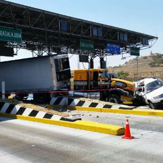 La Unidad Estatal de Protección Civil y Bomberos de Guadalajara (UEPCBJ) informó del percance en el que un tráiler, al parecer, se quedó sin frenos e impactó contra la caseta y contra una camioneta que ahí se encontraba.