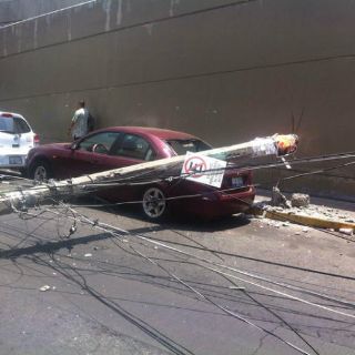 GUADALAJARA, JALISCO (23/ABR/2017).- Cuatro postes derribados, que afectaron hasta 10 carros particulares, y tres más en riesgo de caer, son el saldo del accidente que al parecer causó un camión de carga, que jaló cables de luz al pasar por la calle Clarín al cruce con 8 de Julio.