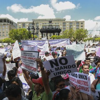 protesta de habitantes de municipios con policías desarmadas contra la Fuerza Única, el Gobierno del Estado revisará el actuar de los elementos estatales por las denuncias de extorsión y tortura de los habitantes.