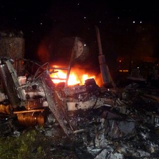 Los oficiales después de apagar el fuego pudieron rescatar el cuerpo del conductor del camión el cual quedó calcinado.