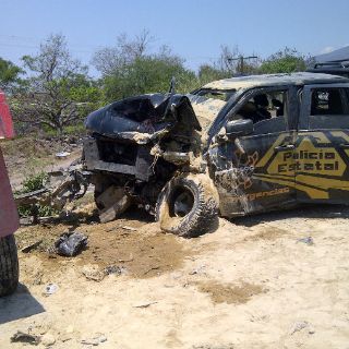 El incidente se da entre una camioneta de la Policía estatal y un camión de carga