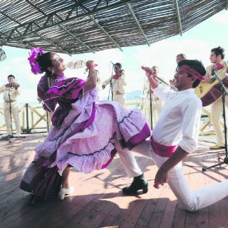 El buffet ya está listo cuando los visitantes llegan a tierra firme. La comida se disfruta mientras el mariachi toca canciones de José Alfredo Jiménez hasta que un grupo de ballet folkórico irrumpe en el restaurante. Ahora las manos no sostienen cubiertos, son usadas para aplaudir. Toca el turno de los cantantes, quienes dejan los ánimos listos para el último espectáculo: un ritual prehispánico que combina con la decoración del restaurante.