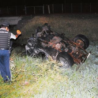 Según empleados de una gasolinera, el vehículo tipo Jeep circulaba a baja velocidad por el acotamiento debido a que llevaba una llanta averiada cuando fue impactado por el Malibu. El Jeep volcó y cayó en un canal, además de que se quemó en su totalidad. El chofer de éste logró salir, sin embargo, otro hombre que lo acompañaba murió.