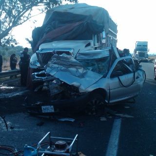 El auto compacto fue impactado de frente por un camión tipo torton que intento rebasar por el lado izquierdo de la fila de autos que esperaban avanzar, adelante del mismo auto siniestrado se encontraba una pipa de Petróleos Mexicanos (Pemex), automotor contra el que fue prensado el Pointer, quedándo éste como “acordeón”.
