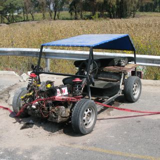 El vehículo, formado con una estructura metálica, sin marca, placas, ni modelo, era conducido por Juan José Delgado Velázquez, de 57 años de edad, quien viajaba con su esposa, Rosario Morales, ambos vecinos del Fraccionamiento Sabinos, en el mismo municipio donde ocurrió la tragedia.