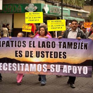 A la manifestación se unieron los pobladores de la Ribera de Chapala, para expresar su repudio a la construcción de un segundo acueducto para extraer más agua del lago, porque afirman que no es la única opción para solucionar el problema de abasto del vital líquido.