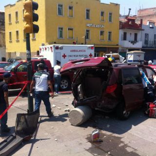 Una camioneta familiar con placas de Nevada, Estado Unidos, fue impactada por una camioneta de la Fiscalía, que venía con los códigos encendidos en el carril preferencial, refieren testigos.