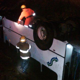 TLAJOMULCO DE ZÚÑIGA, JALISCO (30/JUN/2012).- Un camión de la ruta 623 se volcó en el municipio de Tlajomulco de Zúñiga presuntamente por la lluvia registrada la noche del pasado viernes. Hay 36 lesionados.