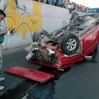 De acuerdo con el informe de las autoridades, el conductor del vehículo involucrado en el percance chocó contra el muro de contención, lo que ocasionó la volcadura; se trató de una camioneta roja tipo pick up de modelo atrasado.