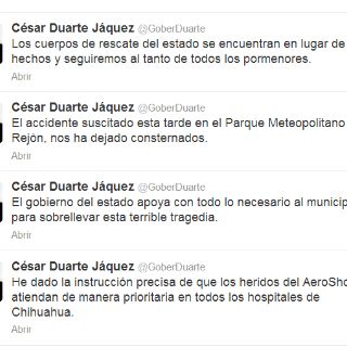 Mientras tanto, el gobernador del estado, César Duarte, informó por medio de su cuenta en Twitter, que el gobierno de la entidad apoyará con todo lo necesario al municipio para sobrellevar el accidente, además indicó que “Los cuerpos de rescate del estado se encuentran en lugar de los hechos y seguiremos al tanto de todos los pormenores”.