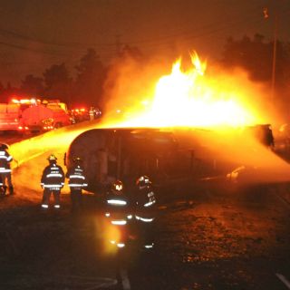 Los peritajes señalan que al parecer la pipa cargada con gasolina se quedó sin frenos, por lo que luego de impactar de frente al vehículo particular salió de la carretera y minutos después se incendió.