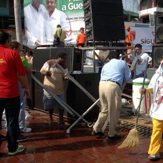 ACAPULCO, GUERRERO (10/ENE/2011).- Un total de 15 lesionados dejó el desplome de una estructura metálica que soportaba el juego de luces de un grupo musical que se encontraba en un templete en pleno acto proselitista del candidato de la coalición “Tiempos Mejores para Guerrero”, Manuel Añorve Baños.