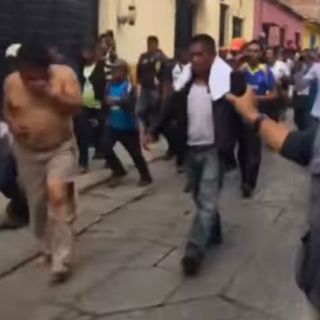 Los dos hombres intercambiaron insultos con los inconformes, pero éstos retuvieron a Juan Encinos y lo obligaron a caminar rumbo al zócalo. En el trayecto lo despojaron de la camisa y los zapatos, lo golpearon y lo arrodillaron sobre dos pequeñas piedras en señal de repudio.