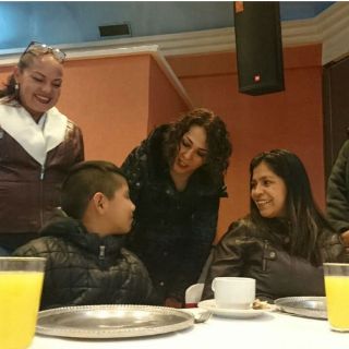 La alcaldesa de Tlalnepantla ofreció la mañana del sábado un desayuno a niños y adolescentes del municipio que reciben becas Metrum para que dejen de laborar en las calles y continúen con sus estudios.