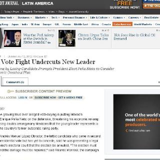 NUEVA YORK, ESTADOS UNIDOS (13/JUL/2012).- Los alegatos de que la elección presidencial en México fue empañada por la compra de votos socavarán las reformas que el virtual candidato ganador, Enrique Peña Nieto, planeaba impulsar este mismo año, apuntó hoy The Wall Street Journal.