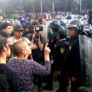 Los jóvenes se apoderaron por espacio de varios minutos del Circuito Interior, pero fueron replegados por los uniformados de la Secretaría de Seguridad Pública del Distrito Federal.