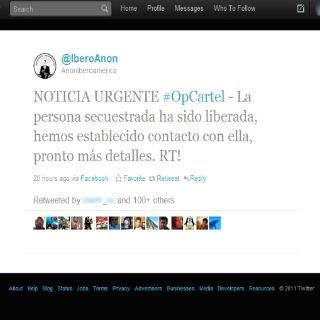 Durante la noche del jueves, se difundió a través de Twitter el anuncio de la puesta en libertad del activista. "Noticia urgente, la persona secuestrada ha sido liberada, hemos establecido contacto con ella, pronto más detalles", señala el texto publicado en la cuenta Twitter @IberoAnon.