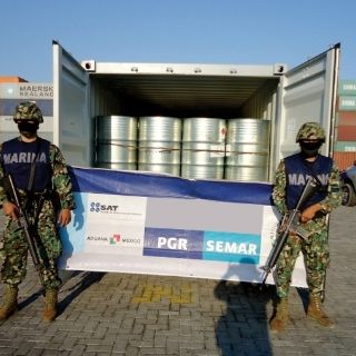 La Secretaría de Marina-Armada de México (Semar) detalló que la sustancia incautada estaba en siete contenedores, donde se almacenaban barriles con 136 mil 250 kilogramos de monometilamina y fenil acetato de metilo, precursores químicos que se emplean para elaborar drogas sintéticas.