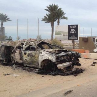 Frente a la exclusiva zona hotelera quedó un auto tipo pick up de modelo reciente totalmente calcinado y con dos cadáveres alrededor.
