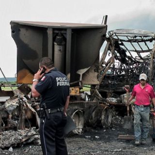 OAXACA (04/SEP/2010).- Al menos 13 personas murieron calcinadas y 11 más resultaron heridas, luego de que un autobús de pasajeros de la línea “Cristóbal Colón” chocara contra un camión de volteo, en la Carretera Transístmica.