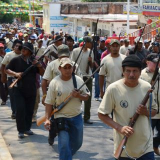 Encabezados por integrantes de la Unión de Pueblos y Organizaciones del Estado de Guerrero, el contingente de policías comunitarios del autonombrado Sistema de Justicia y Seguridad marchó con escopetas y armas de bajo calibre por las calles de este municipio.
