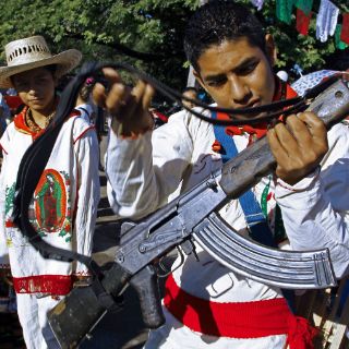 autodefensas, encabezados por Hipólito Mora y Estanislao Beltrán, desfilan por las calles de de La Ruana, en el municipio de Buenavista, Michoacán, en conmemoración por el primer año del surgimiento de este grupo armado.