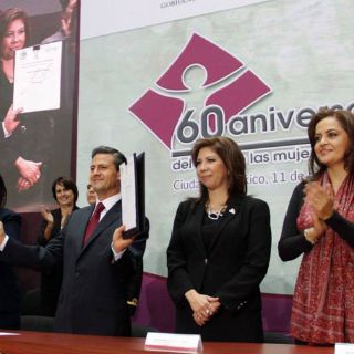 Peña Nieto conmemora aniversario del voto femenino. "Gracias a todas las mujeres que me dieron su confianza que me permiten estar en esta elevada responsabilidad", dijo el mandatario, quien reconoció que el camino por los derechos de este sector "no ha sido fácil", dijo el Mandatario.