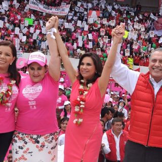 “Hoy estamos vestidas de rosa, porque estamos muy orgullosas de ser mujeres,quiero hacer un compromiso con todas y todos ustedes, lo hago viéndolas a los ojos y con mi madre aquí al frente, quien fue la que me enseñó a vencer la adversidad”, expresó la candidata del PRI.