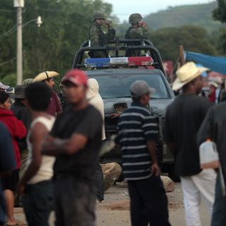 Durante el bloqueo permanente que inició alrededor del mediodía, elementos del Ejército a bordo de dos camiones y una unidad blindada fueron retenidos luego de que habían sido liberados en la comunidad del Pericón, en el municipio de Tecoanapa, por los pobladores e integrantes del sistema de seguridad y justicia.