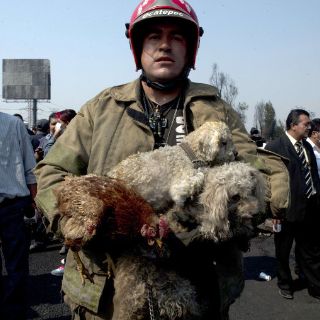 CIUDAD DE MÉXICO (07/MAY/2013).- Elementos de la Brigada Animal de la Secretaría de Seguridad Pública del DF acudieron a apoyar a las mascotas que resultaron heridas tras la explosión de una pipa de gas en Xalostoc, Ecatepec, Estado de México.