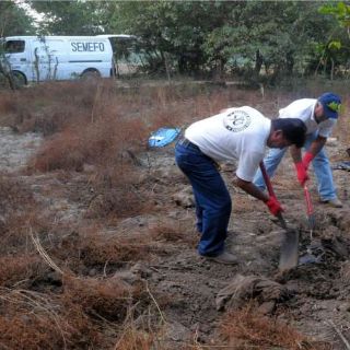 Personal de la Procuraduría de Justicia y de Protección Civil del estado realizan los trabajos de excavación en la fosa, ayudados por una retroexcavadora, además de que actúan de manera sigilosa para no afectar la integridad de los cuerpos que pudieran encontrar en el lugar.