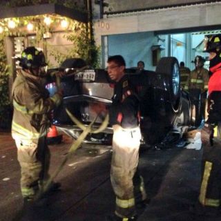 automóvil cayó de un tercer piso cuando su conductor intentaba acomodarlo en un estacionamiento elevado de un restaurante en Polanco, al poniente de la ciudad.